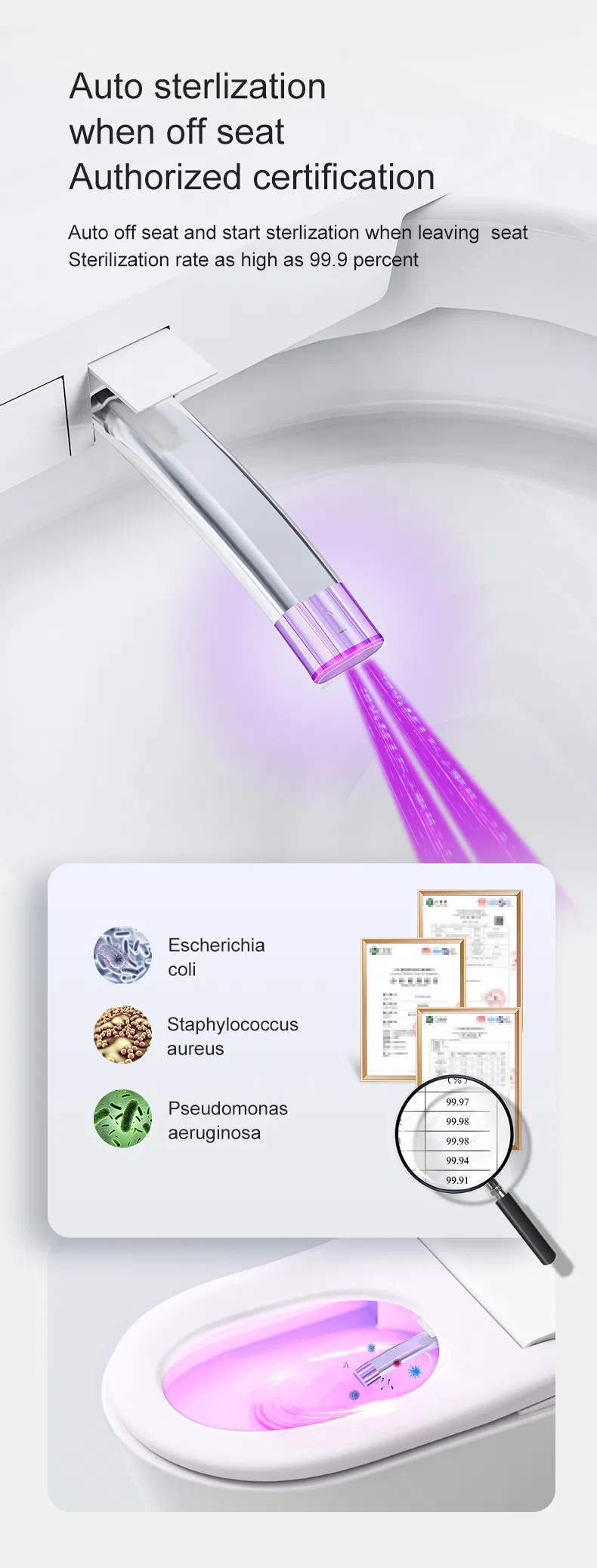 The 180° foam shield creates a layer of bubbles in the bowl that prevents splashing, isolates odors, and keeps the ceramic surface cleaner.